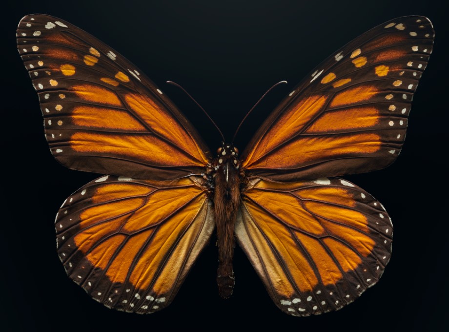 Note: You can learn more about monarch butterflies at the Extinct and Endangered: Insects in Peril exhibition at the American Museum of Natural History in NYC. This features the uniquely powerful macrophotography of Levon Biss, and highlights 40 incredible but imperiled species from specimens from the Museum’s world-class research collection. Each photograph is created from up to 10,000 individual images using special lenses, capturing microscopic detail. If you’re not in NYC, visit the stunning Extinct & Endangered site.