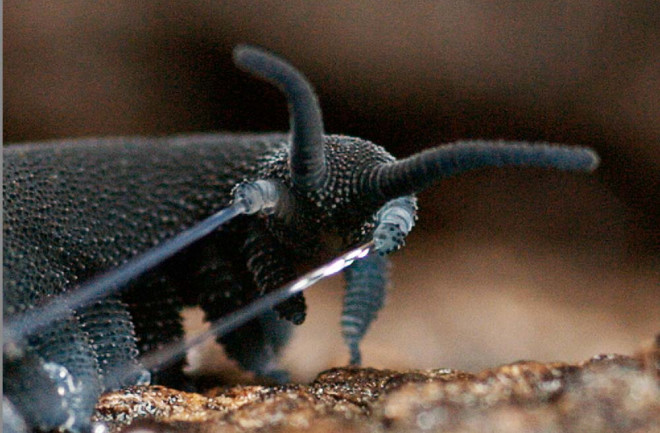 Scientists are looking at the velvet worm’s slimy ammunition as inspiration for a greener, better bioplastic. | Photo by Dr. Alexander Bär – Baer et al. 2017 Nature Communications