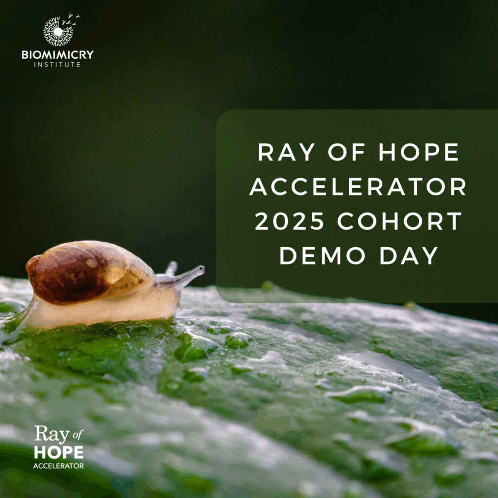 Join us for this year’s Ray of Hope Accelerator Demo Day. A 90-minute interactive showcase of ten startups using nature’s strategies to solve some of the world’s most urgent challenges. After six months in our accelerator, these founders are ready to share how biomimicry is shaping the future of energy, materials, water, biodiversity and more. Come prepared to ask questions and dig in.
