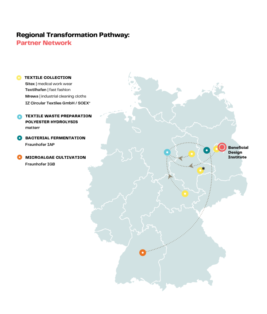 The Nature of Fashion: Design for Transformation is led by the Biomimicry Institute and funded by Laudes Foundation. The Berlin–Brandenburg pilot implemented by Beneficial Design Institute in collaboration with Fraunhofer IAP, Fraunhofer IGB, matterr GmbH, Regenerate Fashion, and regional industry partners. Learn more at https://biomimicry.org/innovation/nature-of-fashion/ and d4t.biomimicry.org