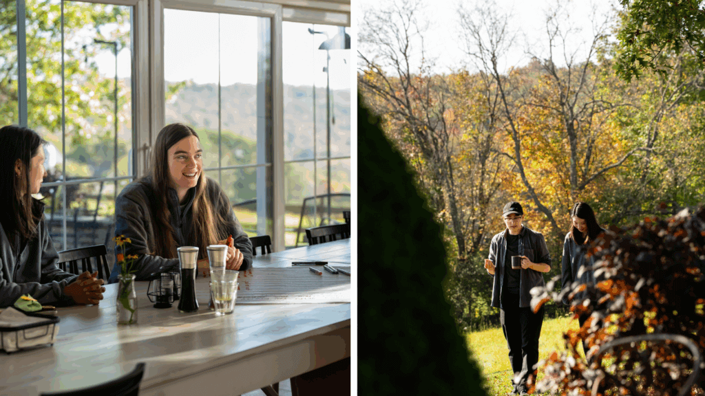 Nature itself became a teacher, offering a diversity of lessons. Ella Csuka, Founder and CEO at Ecotune shared, “I had the opportunity to be present in nature, observing the world around me from moment to moment – the last blooming wild flowers of autumn, the falling of leaves in the forest, the migration of blue jay birds in the early morning – a reminder of the ever-present cycles of change.” Ariel Blumenberg, Lead Engineer at PolyGone Systems observed, “Everything finds its own way to grow and thrive in the forest, and the ecosystem operates in cycles rather than linear progressions. Setbacks are natural, but new success can take its place through different pathways.” As Jiye Son at ANEW Material beautiful put it, “It taught me to think holistically about my startup as part of a bigger ecosystem and how we’re all tangled up together.” Immersed in a new landscape and the changing colors of fall, founders drew insights from nature to inform their work and role, and embraced systems thinking and the bigger picture, inspired by the interconnection inherent in nature.