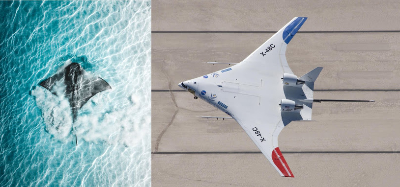The sleek, aerodynamic design has caught the attention of NASA engineers and Boeing who looked at the manta ray wing when designing various versions of the aircraft known as X-48. The single body unit has an innovative blended wing body structure, where the engine of the aircraft sits on the plane wings versus under them and a lack of a conventional tail. This aircraft has demonstrated NASA’s goals of reduced fuel, emissions and noise, though one of the bigger challenges is the lack of a conventional tail has made it more challenging to stabilize and control.